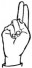 На ћирилици написано МАЈА КРАГИЋ састоји се из 10 слова [?]. Исписано ћириличном једноручном азбуком за глувонеме: